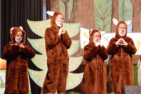 Erzähler, 5 Sprechrollen und beliebig viele Tierrollen, die in einer Gruppe sprechen, 6 – 10 Jahre, ca. 55 min.